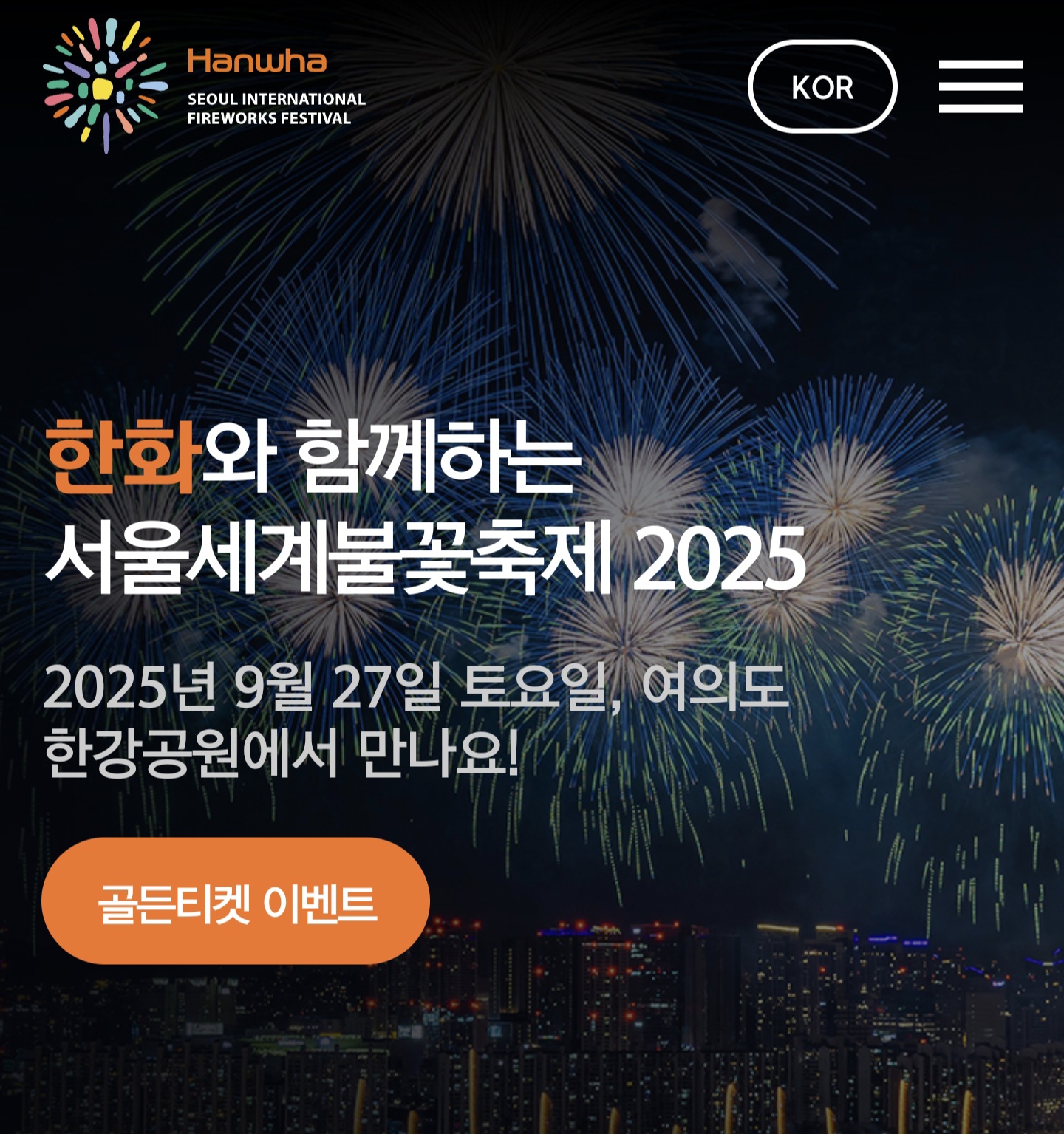불꽃축제를 가장 가까이에서 즐길 수 있는 골든티켓 이벤트가 진행 중이에요!
