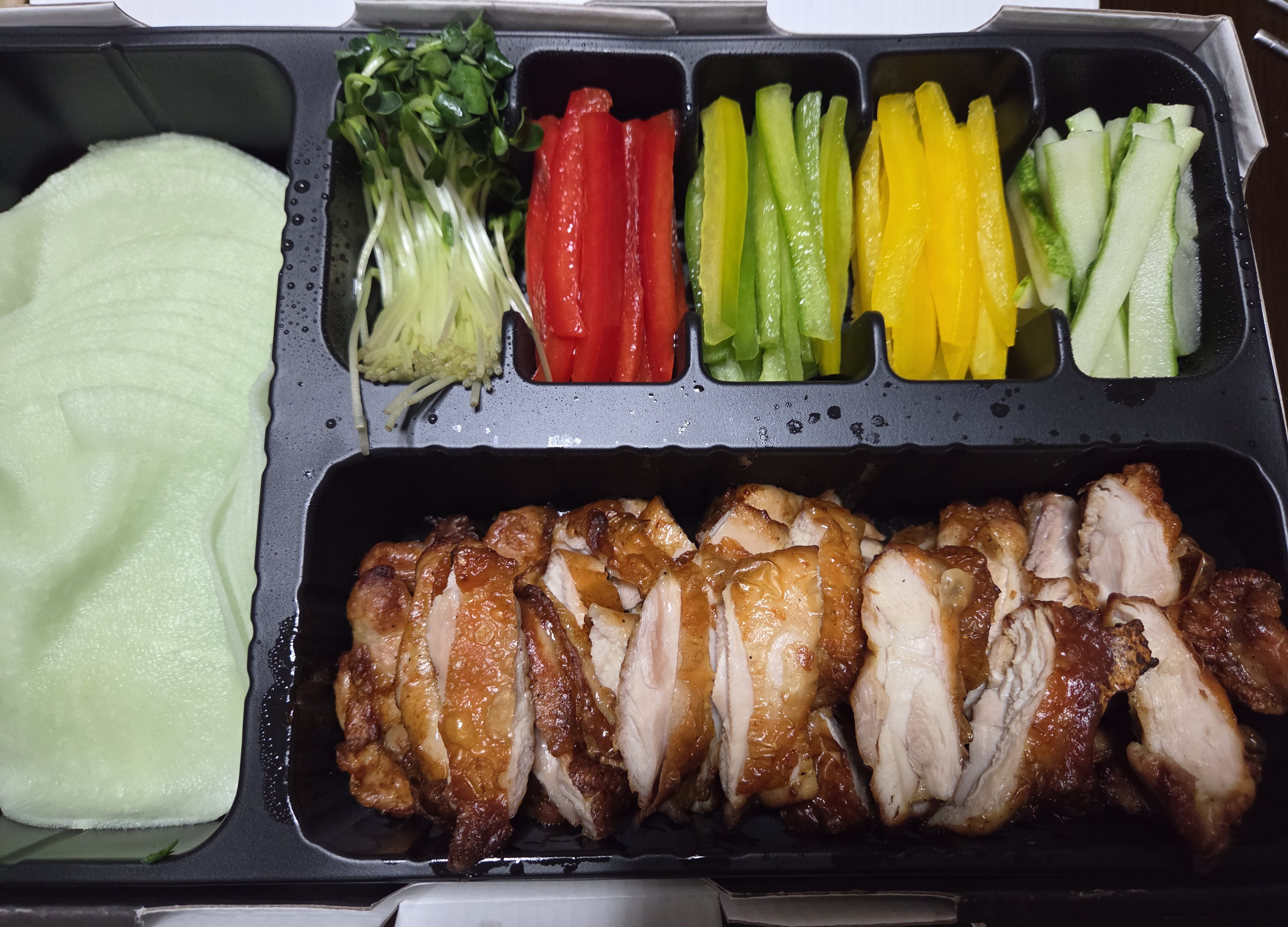 누나홀닭 인기 메뉴 후레쉬쌈닭! 오븐에 구운 치킨과 신선한 채소, 쌈무에 싸먹는 건강한 치킨 . 집에서 간단히 즐기는 특별한 치킨쌈.제가 제일 좋아하는 치킨 리뷰 시작합니다~!.