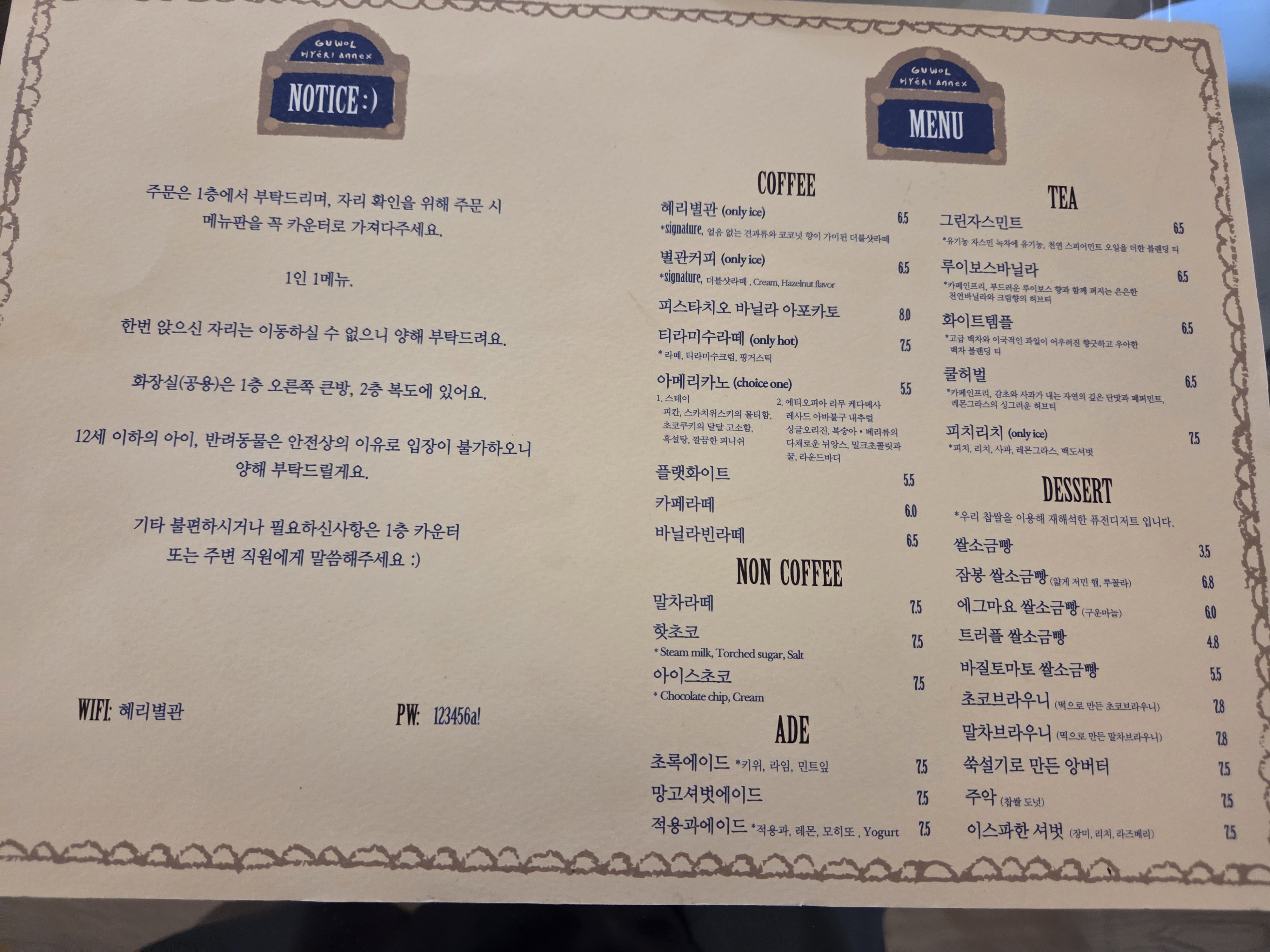 시그니처 메뉴는 혜리별관이라는 라떼인데요. 특이하게 얼음은 따로 나오더라구요