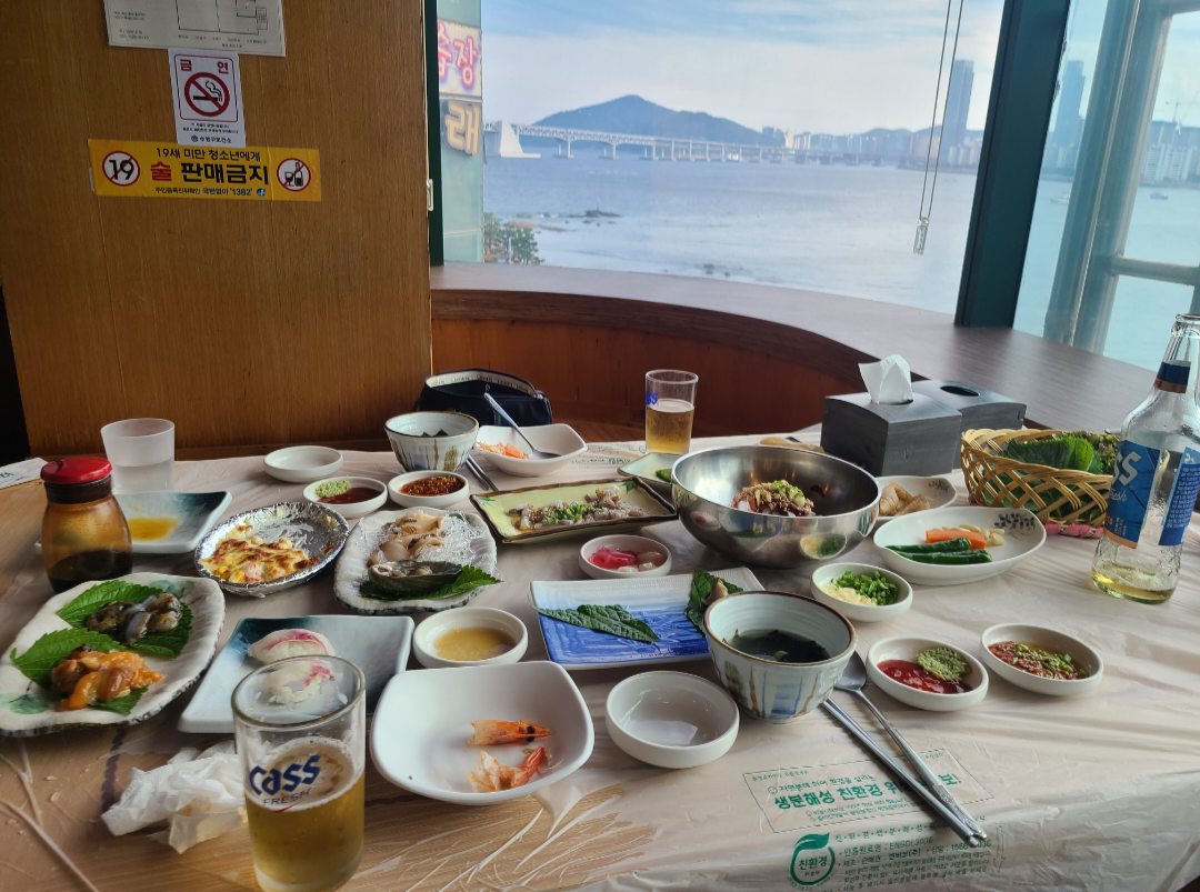 광안리를 왔으니 회를 먹어줘야지! 멋진 배경을 보면서 먹는 회!