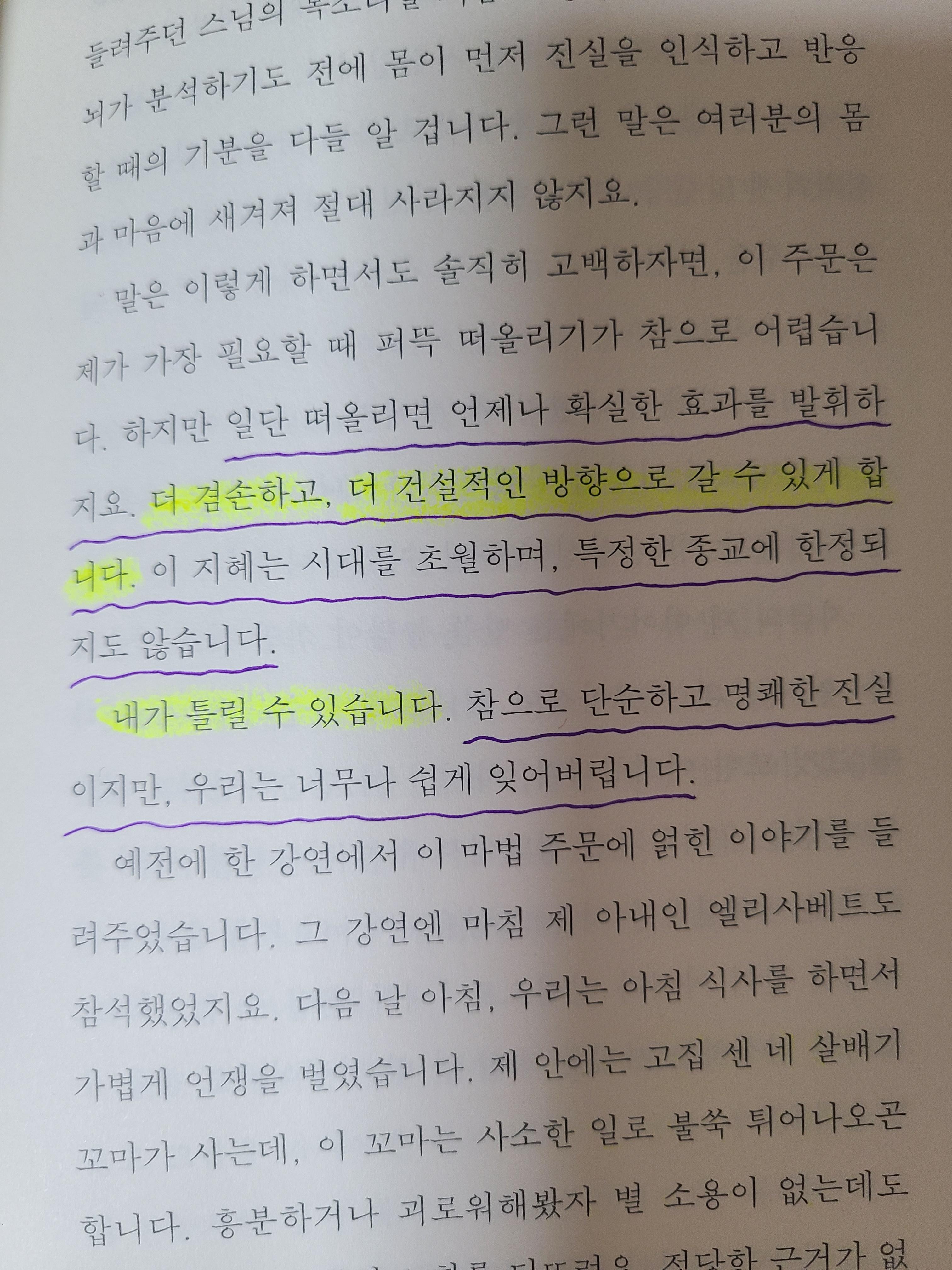 정말 한구절 한구절 밑줄을 치지 않을수밖에 없을정도로 보석같은 내용들로 가득했다.