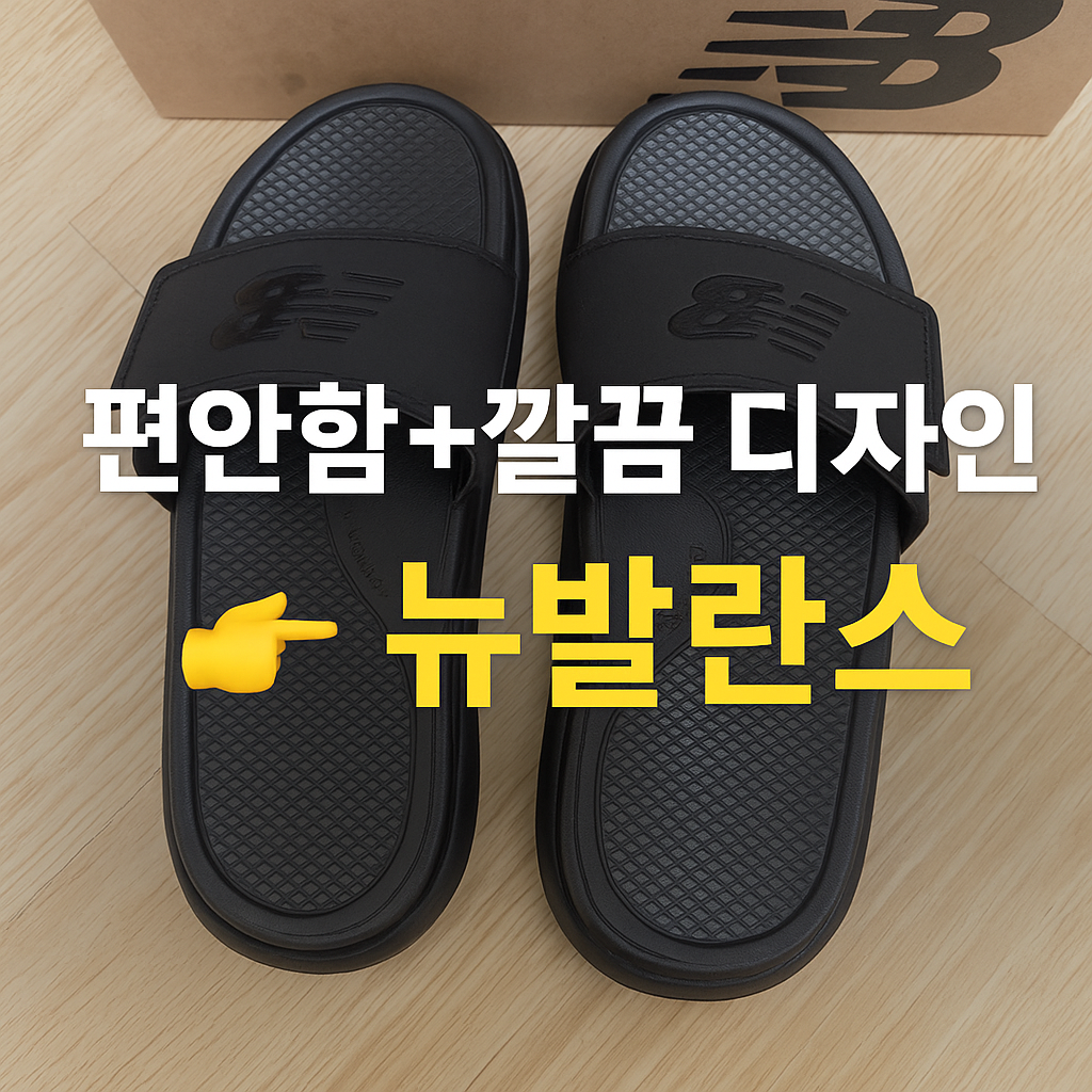 올블랙에 디자인이 깔끔하고 예뻐서 보자마자 픽했어요 ~!!바로 뉴발란스 NB 슬라이드 블랙인데요