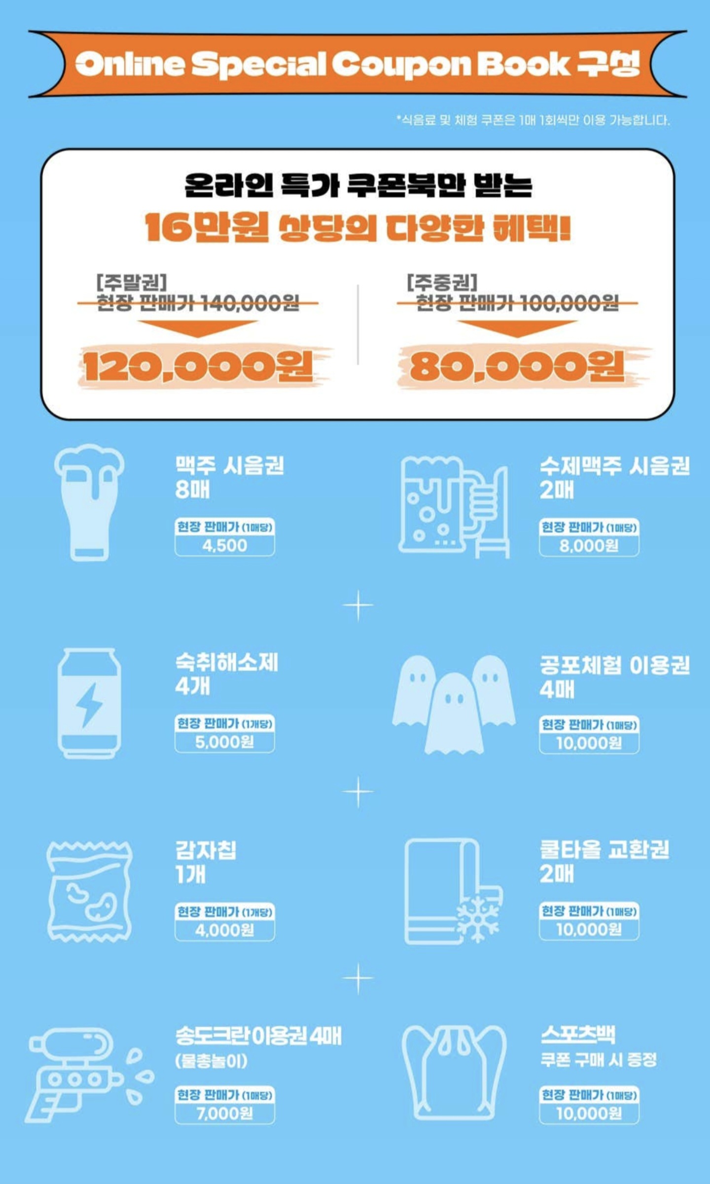 엥 물총놀이? 공포체험? 3년전에 갔을땐 저런거 없었는데.. 새로운 행사들이 생겼군요~! 혜택도 많고 기대됩니다 ^^