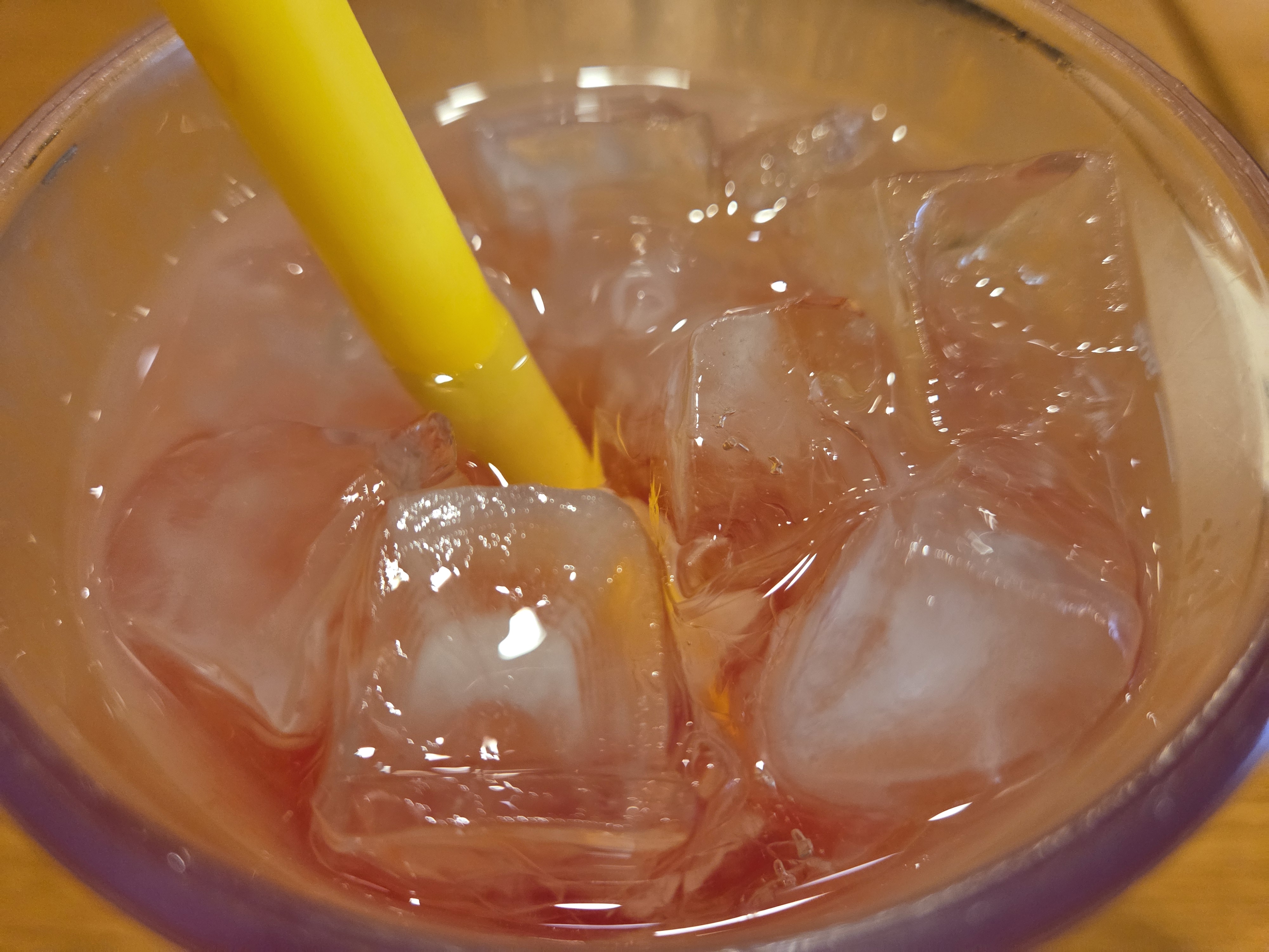 얼음이 가득찬 잔 안에 층층이 쌓인 핑크빛 그라데이션 색감이 정말 예쁘네요,