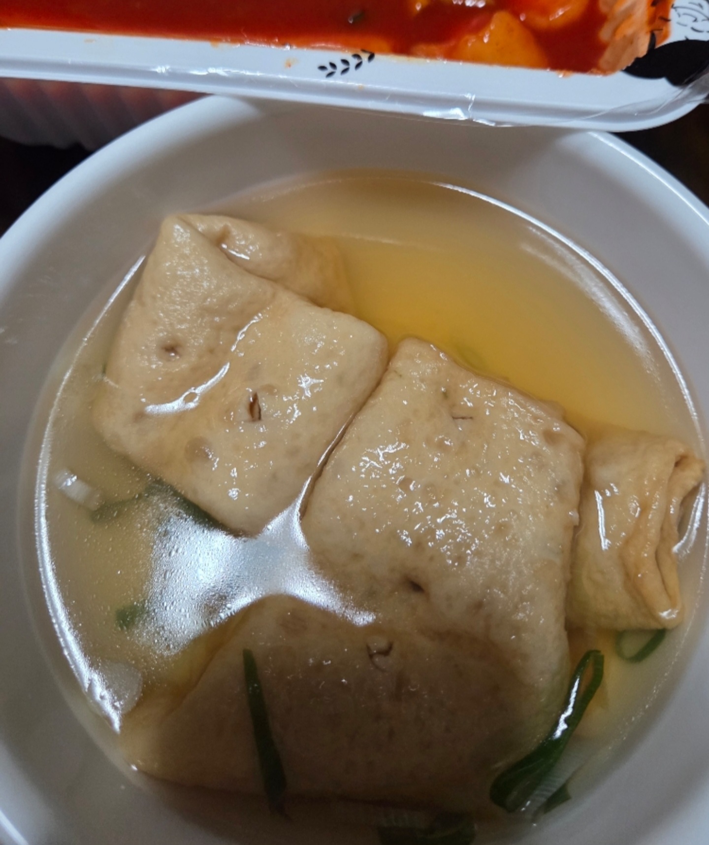 떡볶이에 또 빠질 수 없는 조합 바로 오뎅! 따뜻하고 담백한 국물이 매운 떡볶이랑 환상의 케미를 보여줬습니다.