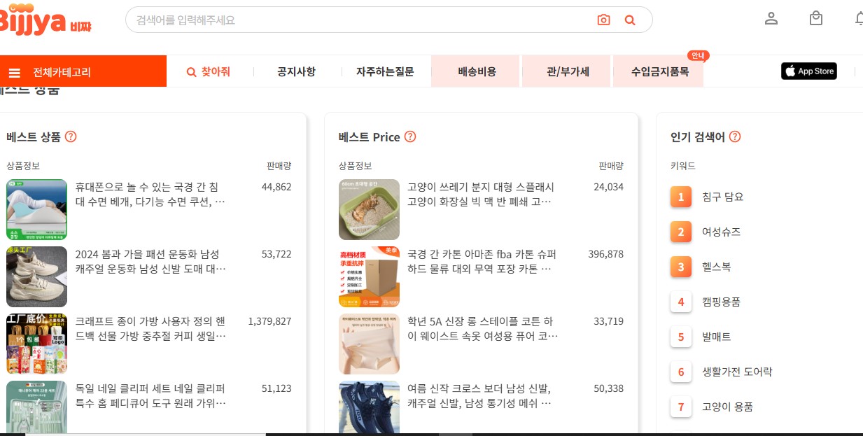 비쨔는 중국 현지 셀러들이 판매하는 수많은 상품을