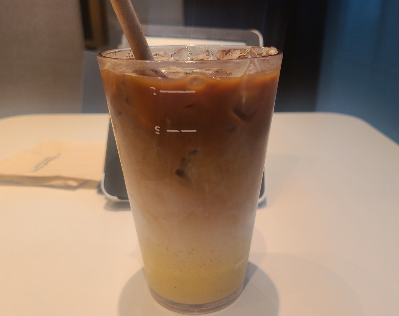 무지 달다. 맨 아래 시럽만 쪽 팔아먹고 싶었음 ㅋㅋ 섞어주었더니 바닐라라떼랑 크게 다르지 않은 맛인거 같다..