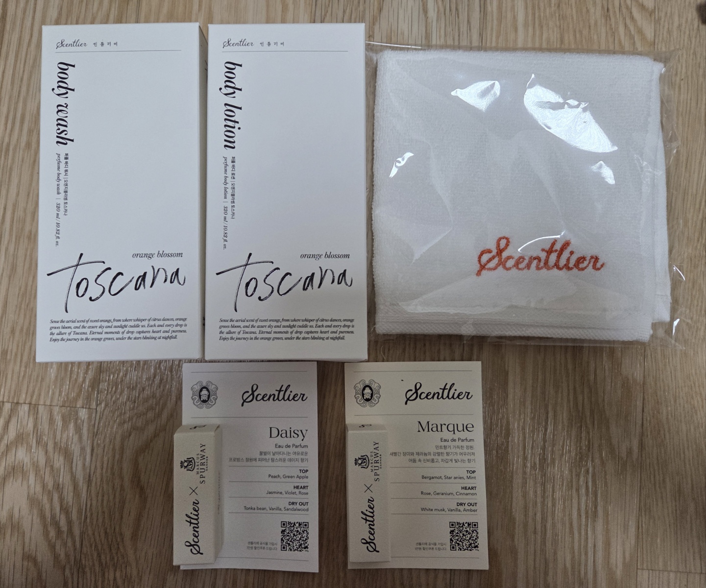 센틀리에(SCENTLIER) [사은품증정][쇼핑백증정] 오렌지블라썸 토스카나 퍼퓸 바디 케어 SET (워시/로션). <p style="font-size: 16px; line-height: 26px; color: #000000"></p><p><img alt="" style="max-width: 100%" src="https://im