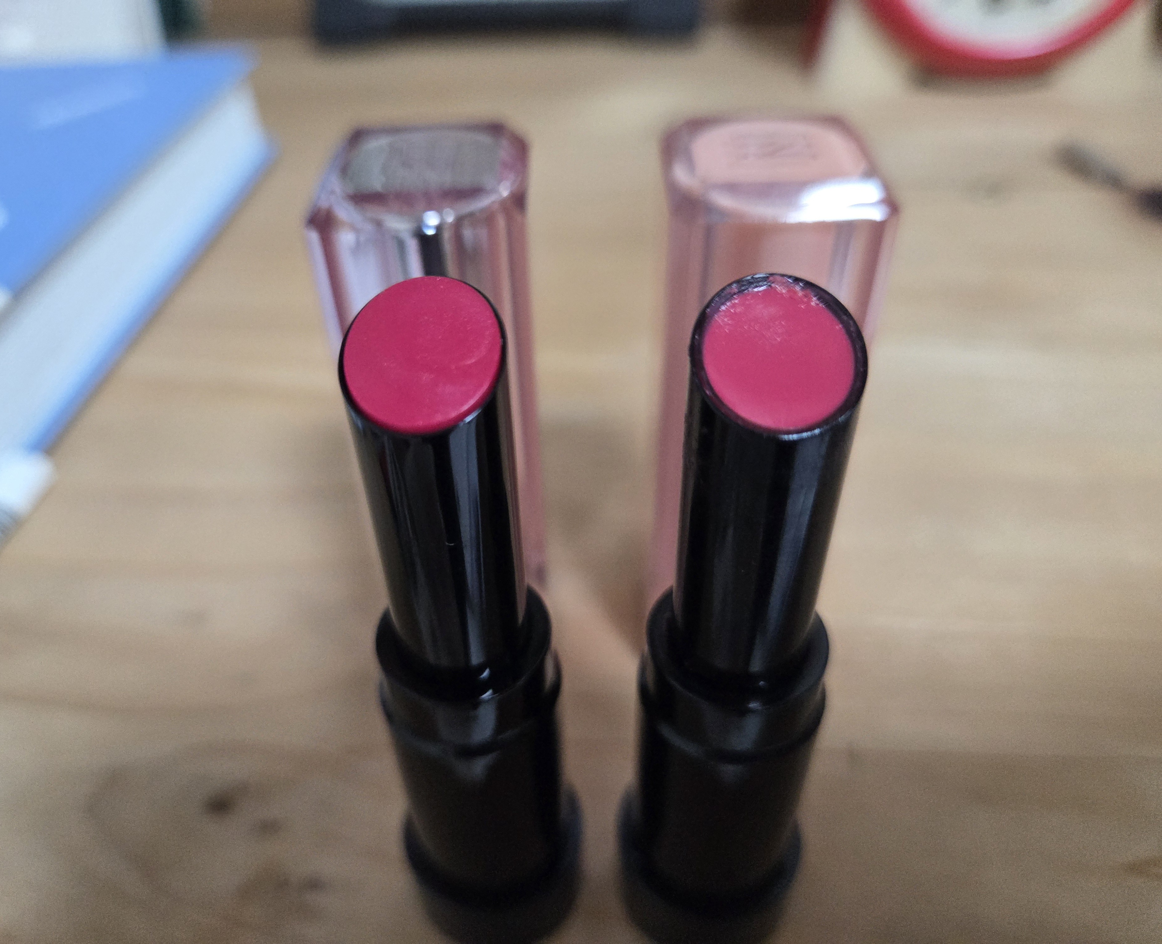 왼쪽이 틴티드 샤인스틱 스터닝핑크이고 오른쪽이 누드밤 94호 스윙입니다.