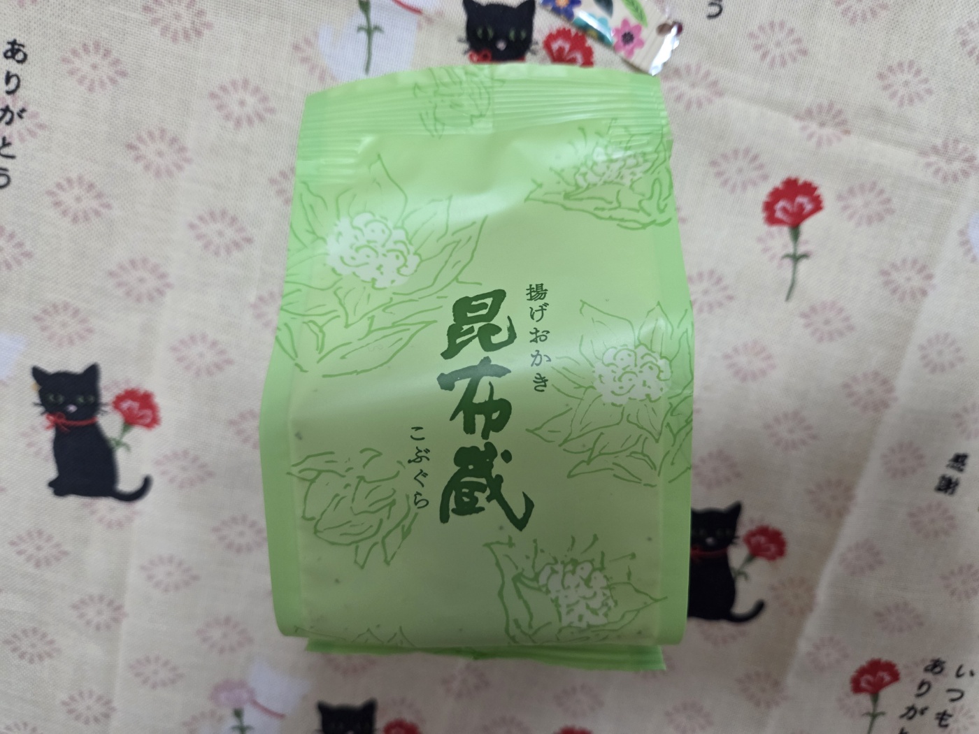 이 과자는 다시마 풍미가 나는 바삭한 튀김 코부구라 오카키입니다.