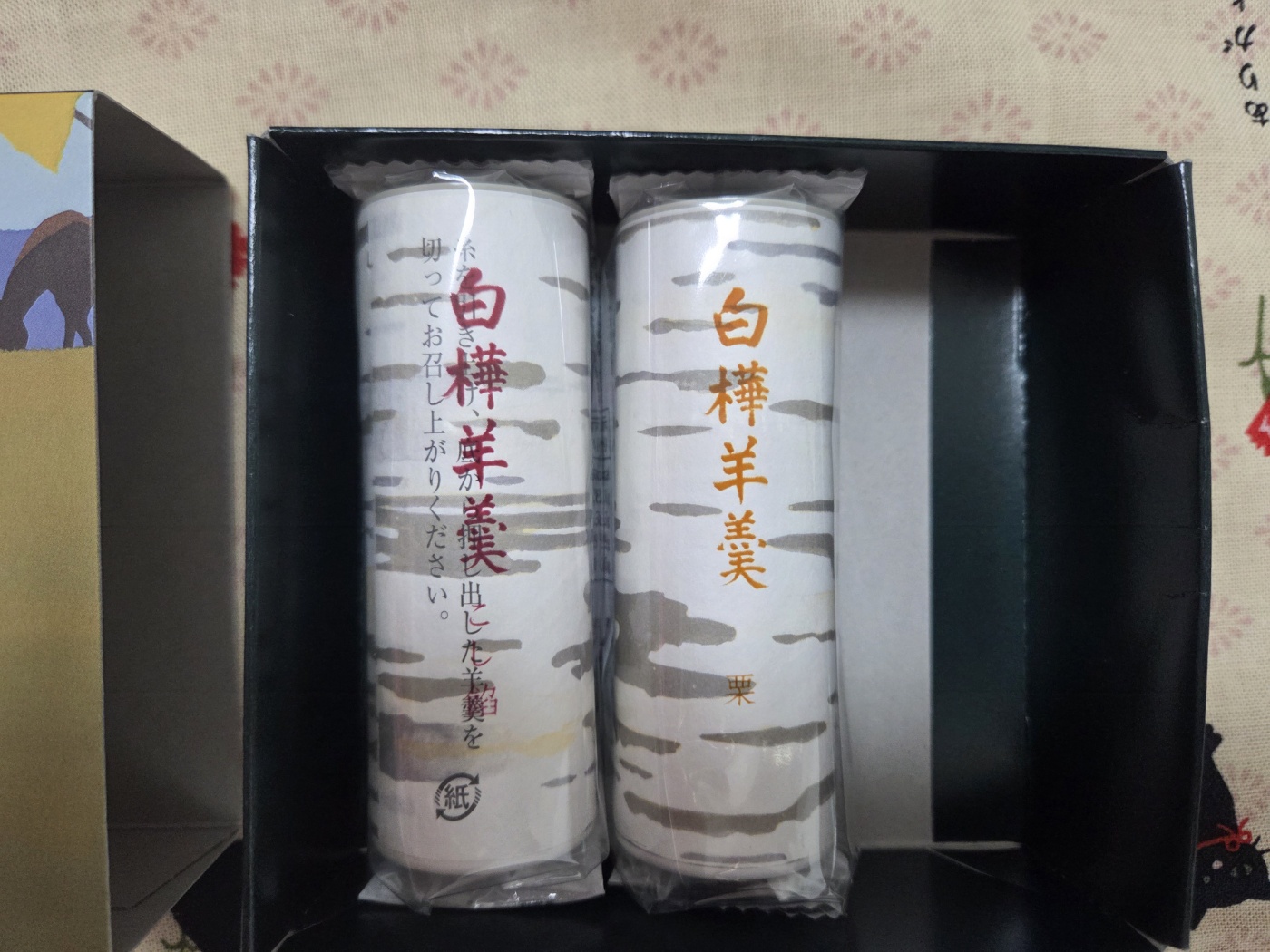 롯카테이 양갱인데요 '시라카바'는 자작나무를 뜻하는 말로 포장지부터 상자까지 마치 홋카이도의 자작나무 숲을