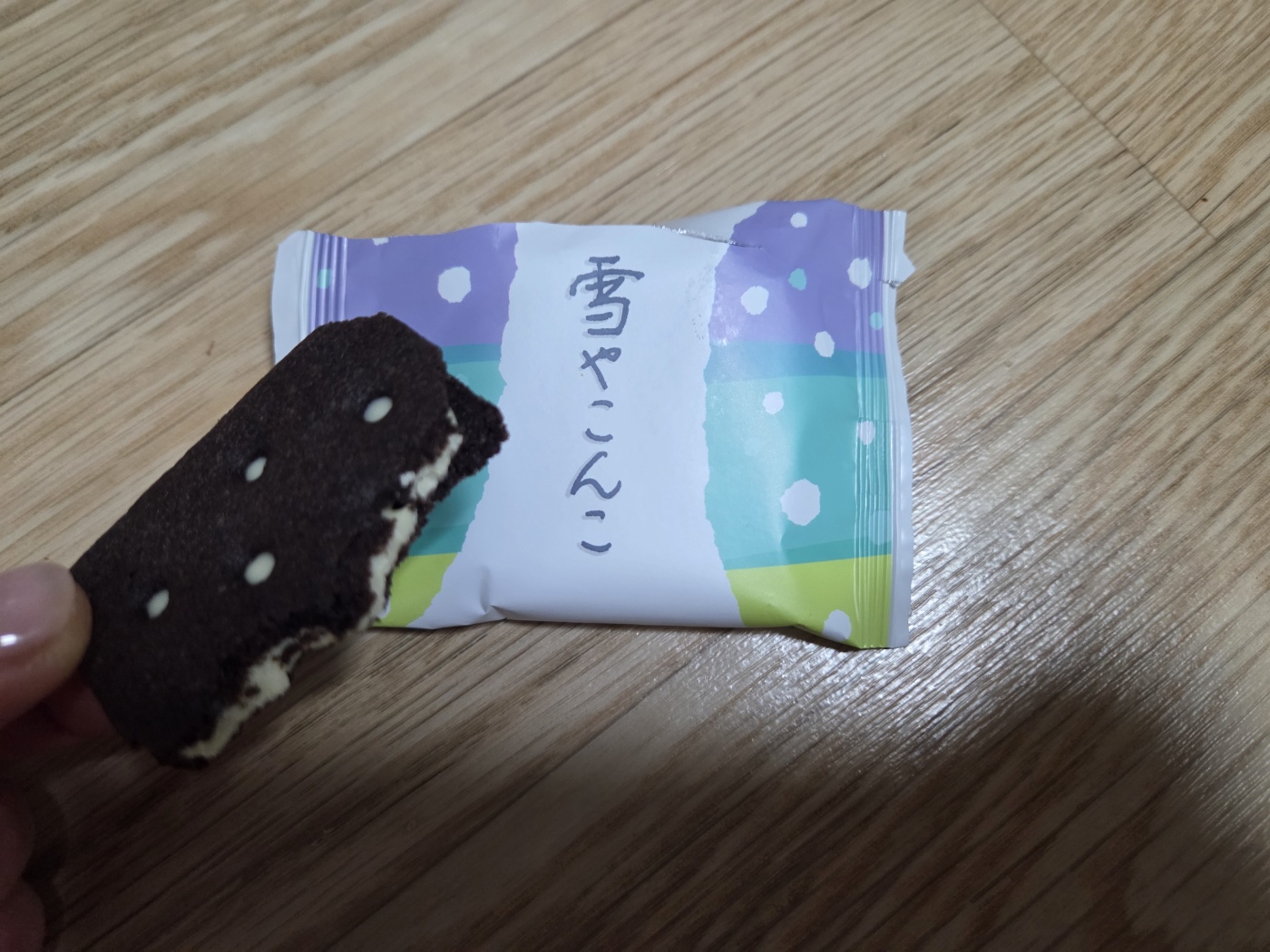 귀여운 포장지의 이 과자는 유키야콘코라는 과자입니다.