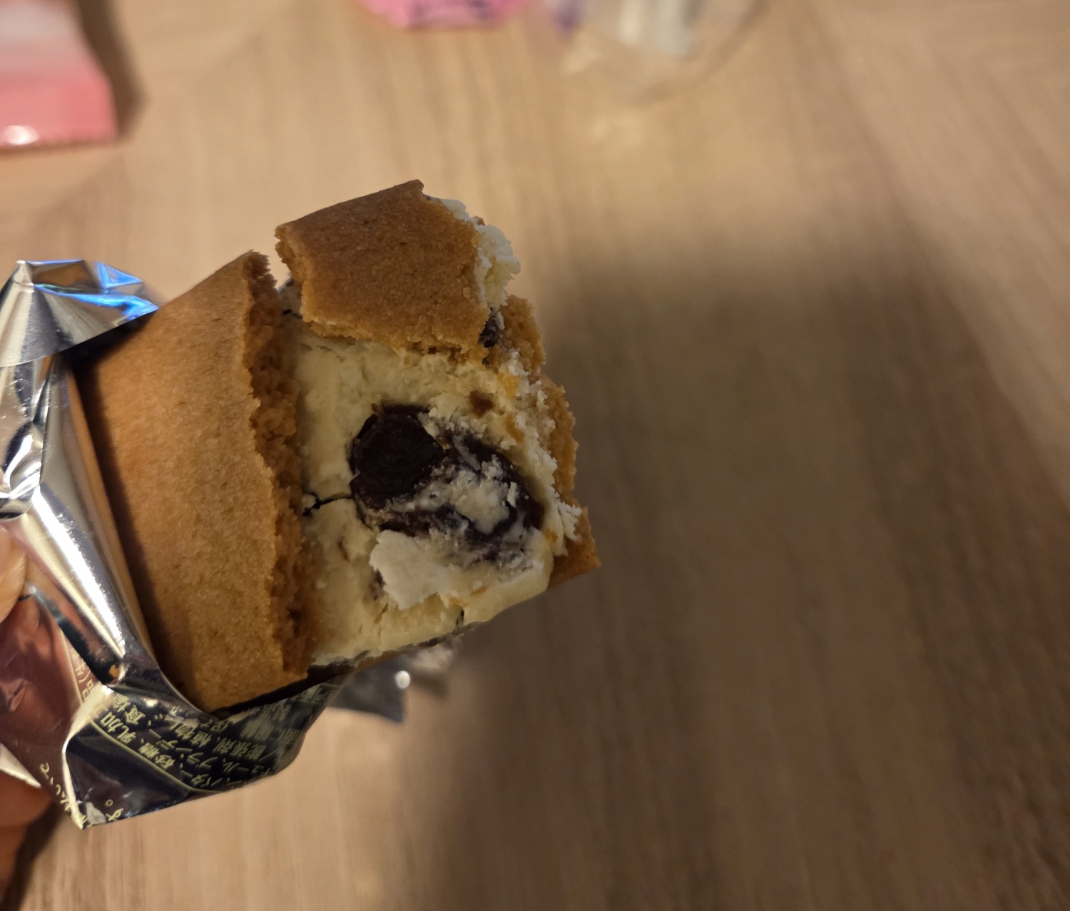 버터크림과 화이트 초콜릿,건포도가 쫀득한 비스킷 사이에 폭신하게 들어있어요