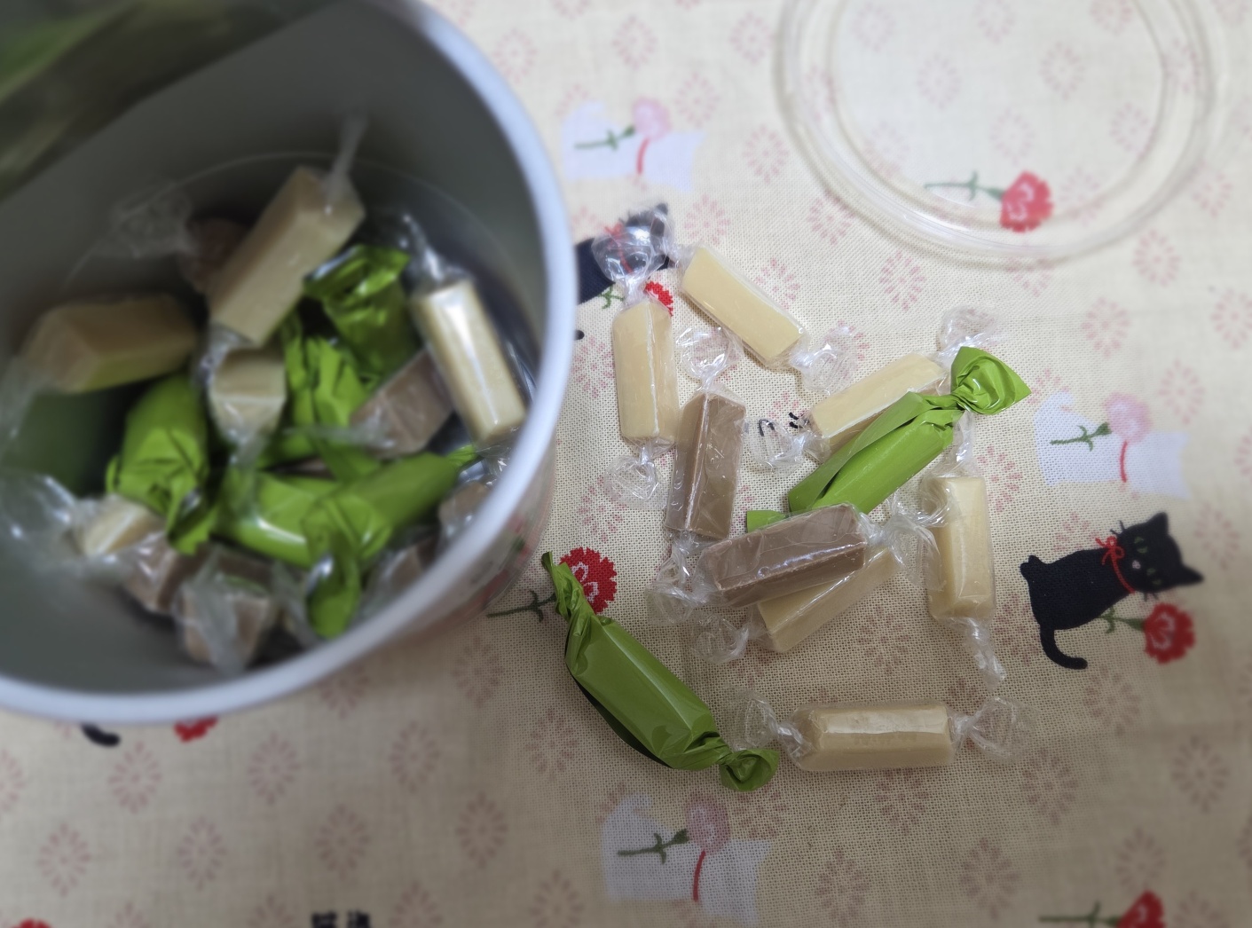 연두색 포장지는 말차맛인데 색상이 너무 예쁩니다 색상도 예쁘지만 맛이.....하...말차맛에 밀크맛이 진하게 더해져서