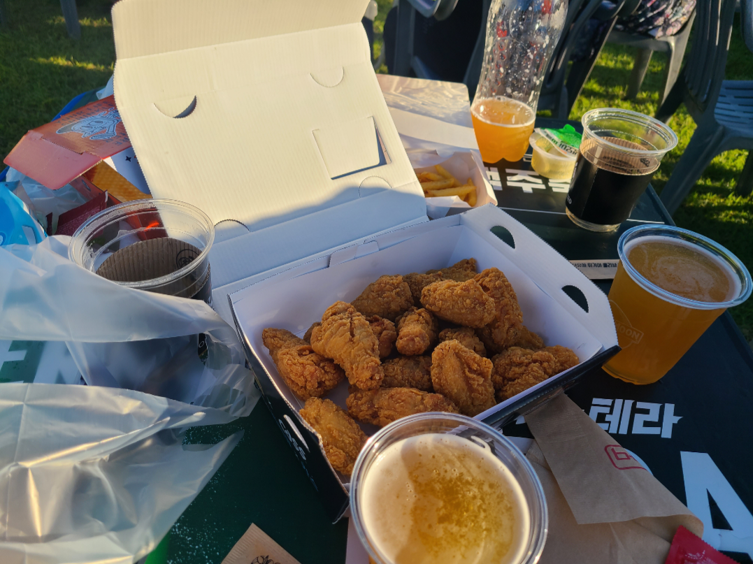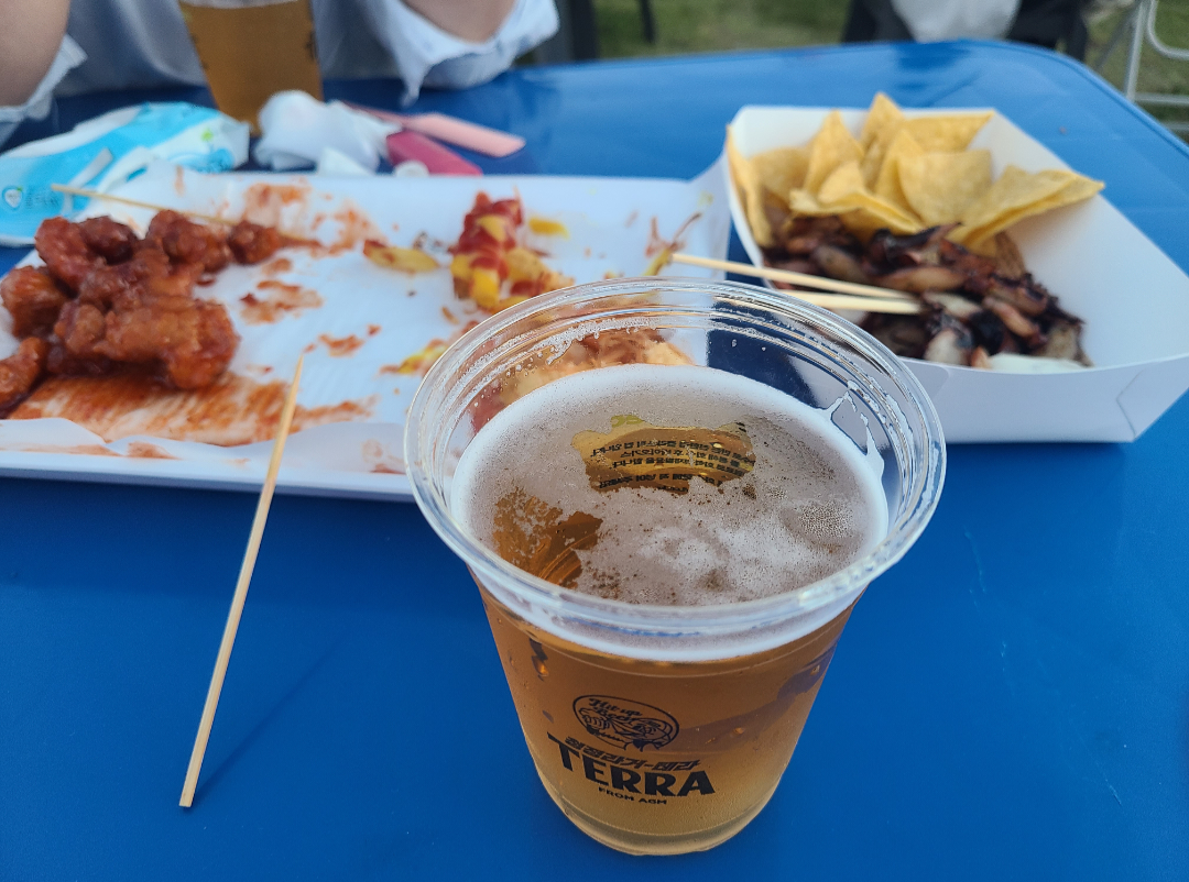 플라스틱 잔에 맥주를 ㅋㅋ