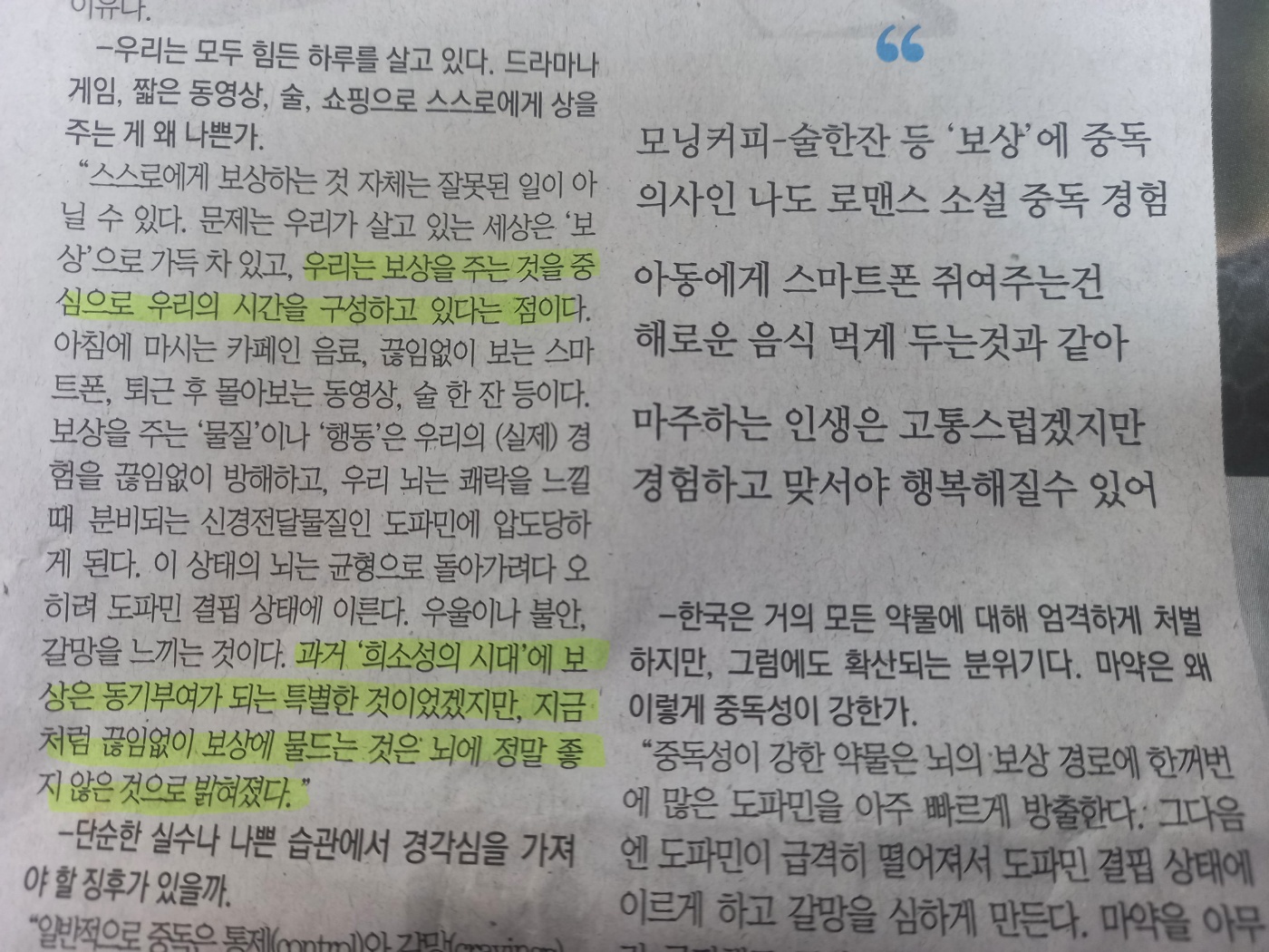 <도파민네이션>은 신문에서 저자의 인터뷰글을 보고 중독에 관하여